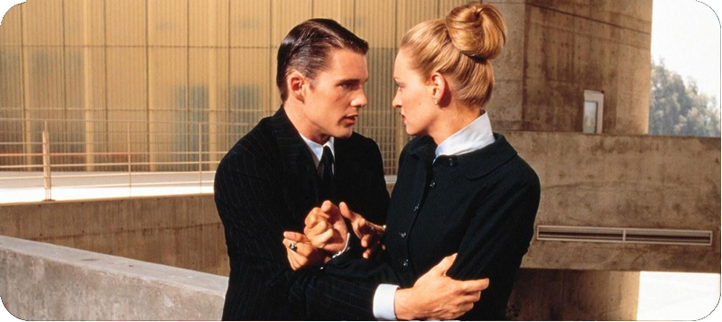 Можно порадоваться светлой попытке показать отношения двух очень сдержанных внешне и внутренне людей: у Никкола это выходит с небольшой натяжкой, но убедительно. Чего не получается у меня сказать о его выдуманном мире - культовый тех-нуар, увы, слишком часто рискует оказаться надувательством. Ни в диковатую мериократию, ни в 'этичную' евгенику, ни в то, как в Гаттаке определяют, какая овца паршивая, поверить не удаётся. А еще этот его пресловутый визуальный стиль слишком вымученный: серые офисные пространства из 50-х, железобетон, коридоры "Космической Одиссеи", мрачный внешний мир, фырфырфыр, унылая униформа героев (ох, да я ведь люблю минималистичные костюмы в кино, но они еще никогда не работали так плохо).